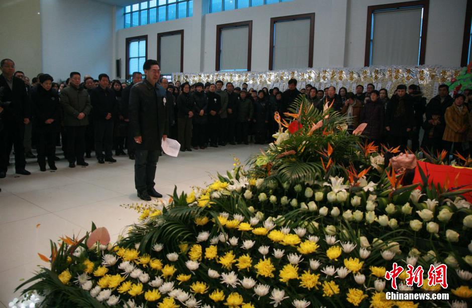 2月16日,六龄童章宗义追悼会上,人们前往悼念,寄托哀思。中新社发 李晨韵 摄