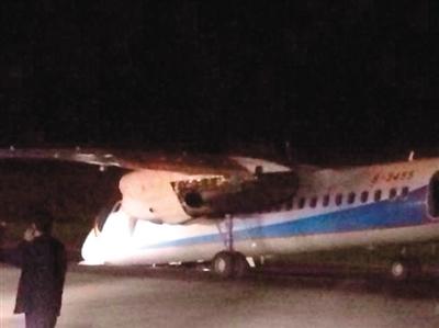 新京报讯 昨日18时许,幸福航空公司一架新舟60客机在郑州新郑机场降落时,起落架出现故障,导致机头触地。机上44人无伤亡,事故原因正在调查。